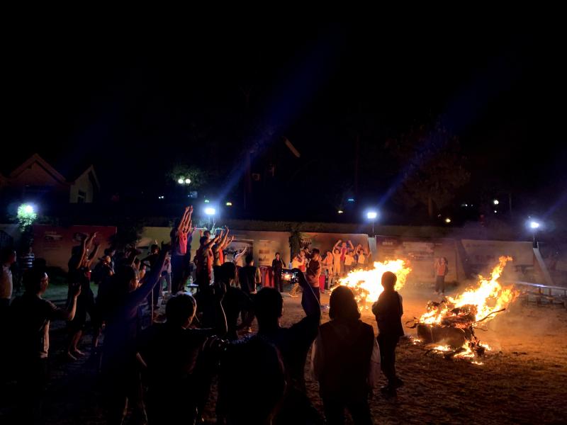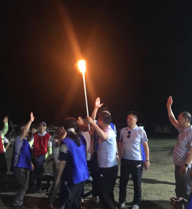 夜幕四合,工會主席王志凌點燃了火把,拉開了篝火晚會的序幕。在輕快歡快的音樂節拍下,紅藍兩隊隊員們手拉著手、肩并肩圍著熊熊篝火歡呼著、舞動著、跳躍著、歌唱著,隊員們完全沉浸在歡樂的海洋里……當《朋友》之歌響起時,在場所有人一起放聲歌唱,將本次活動的氣氛推向高潮!